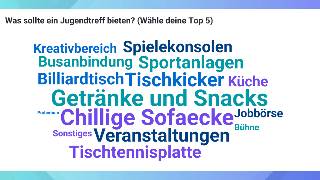 Die Ergebnisse sind eindeutig: Jugendliche in Oberstdorf wünschen sich einen Treffpunkt, Angebot und Zugang zu Sportanlagen.